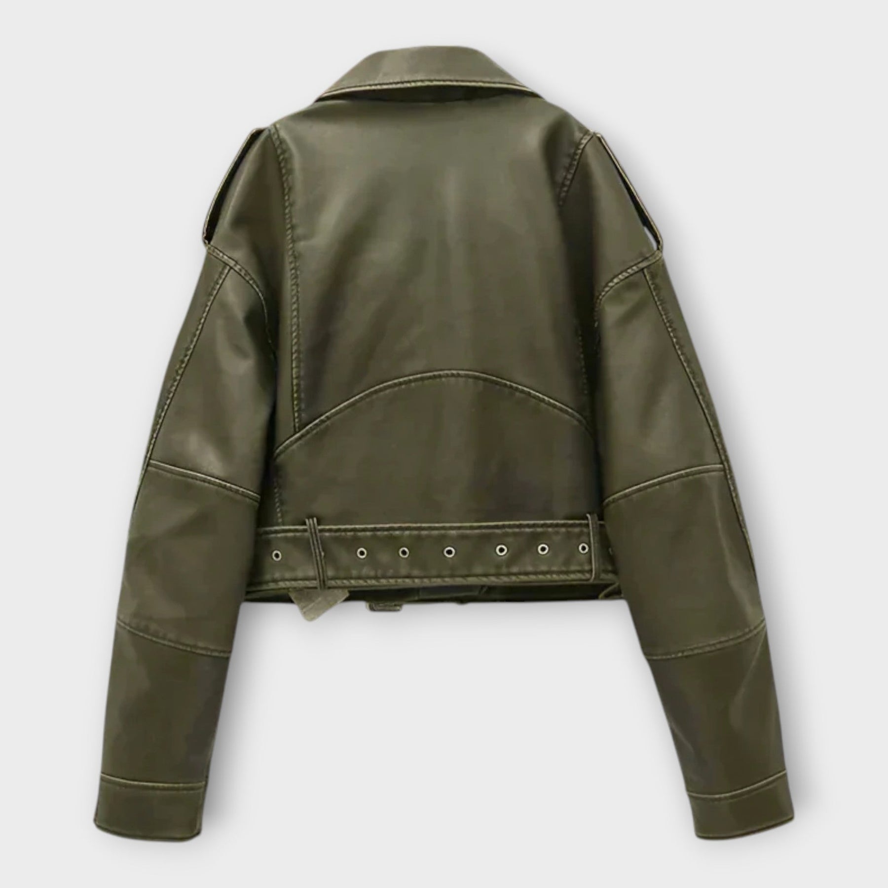 Μοντέρνα Κοντή Δερμάτινη Ζακέτα με Ζώνη και Εκλεπτυσμένη Αισθητική