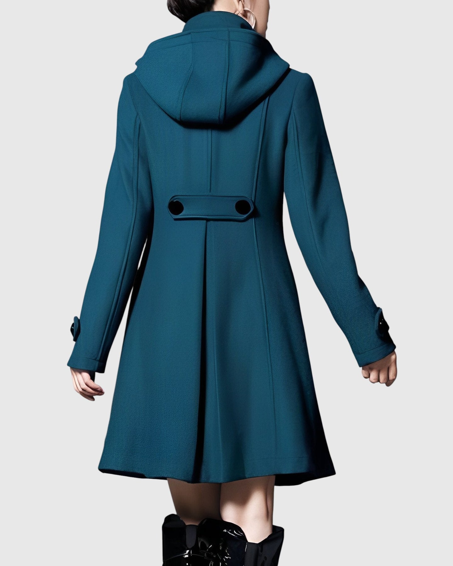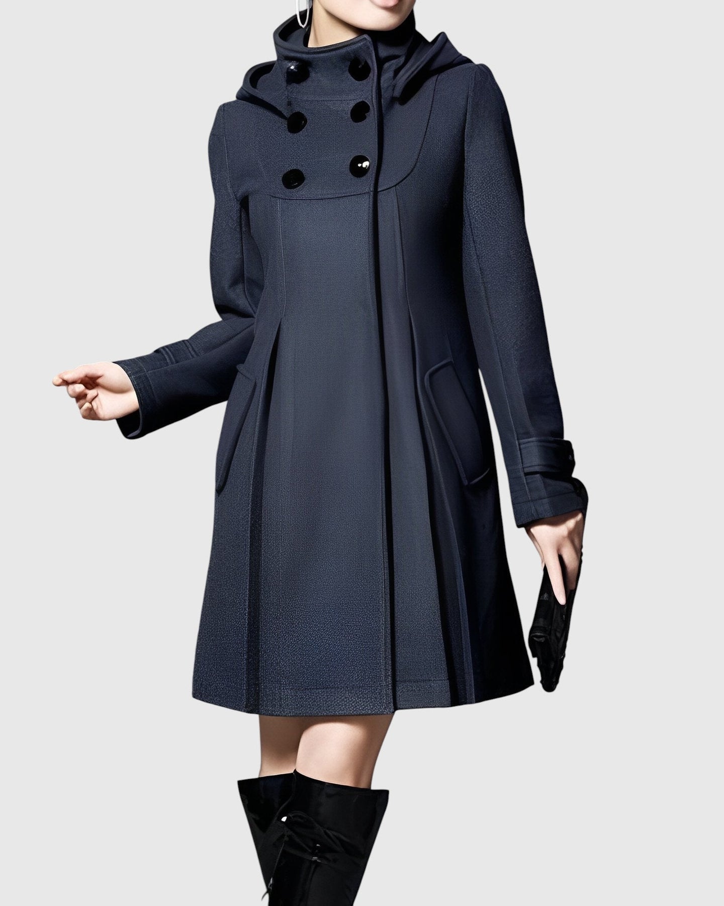Γυναικείο παλτό με διευρυμένη (A-line) γραμμή, ψηλό γιακά και ρυθμιζόμενη κουκούλα. Στο μπροστινό μέρος έχει διπλό κλείσιμο και πρακτικές τσέπες με καπάκι. Η πιο ανθεκτική, μαλακή ύφανση διατηρεί το σχήμα της χωρίς περιττό βάρος, ενώ το μεσαίο μήκος οπτικά επιμηκύνει τη σιλουέτα. Μανσέτες με διακοσμητική ταινία, ακριβής κατασκευή και άνετη επένδυση. Καθολική επιλογή για την πόλη, τη δουλειά και το Σαββατοκύριακο — συνδυάζεται υπέροχα με φορέματα, φούστες και τζιν και ξεχωρίζει με μπότες.
