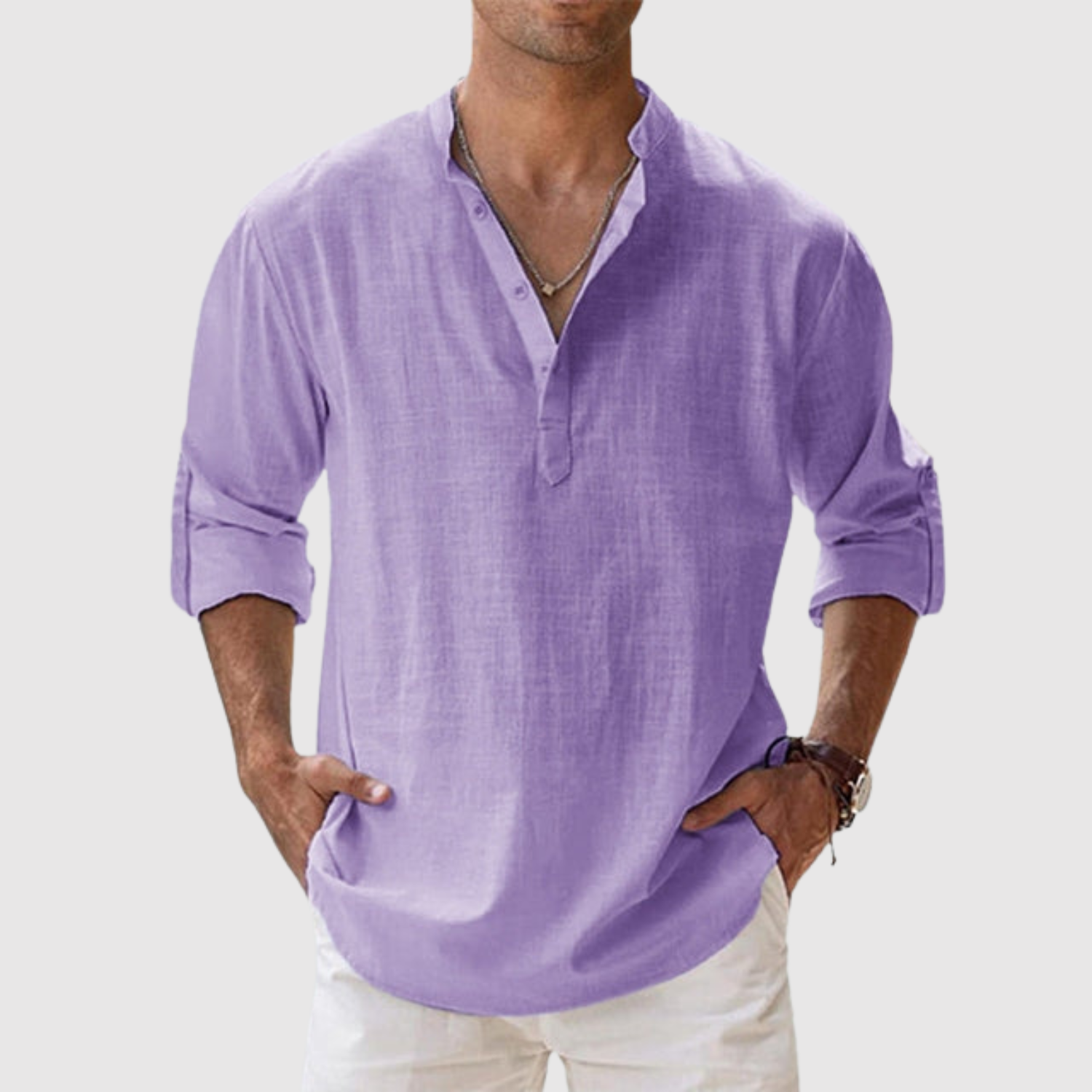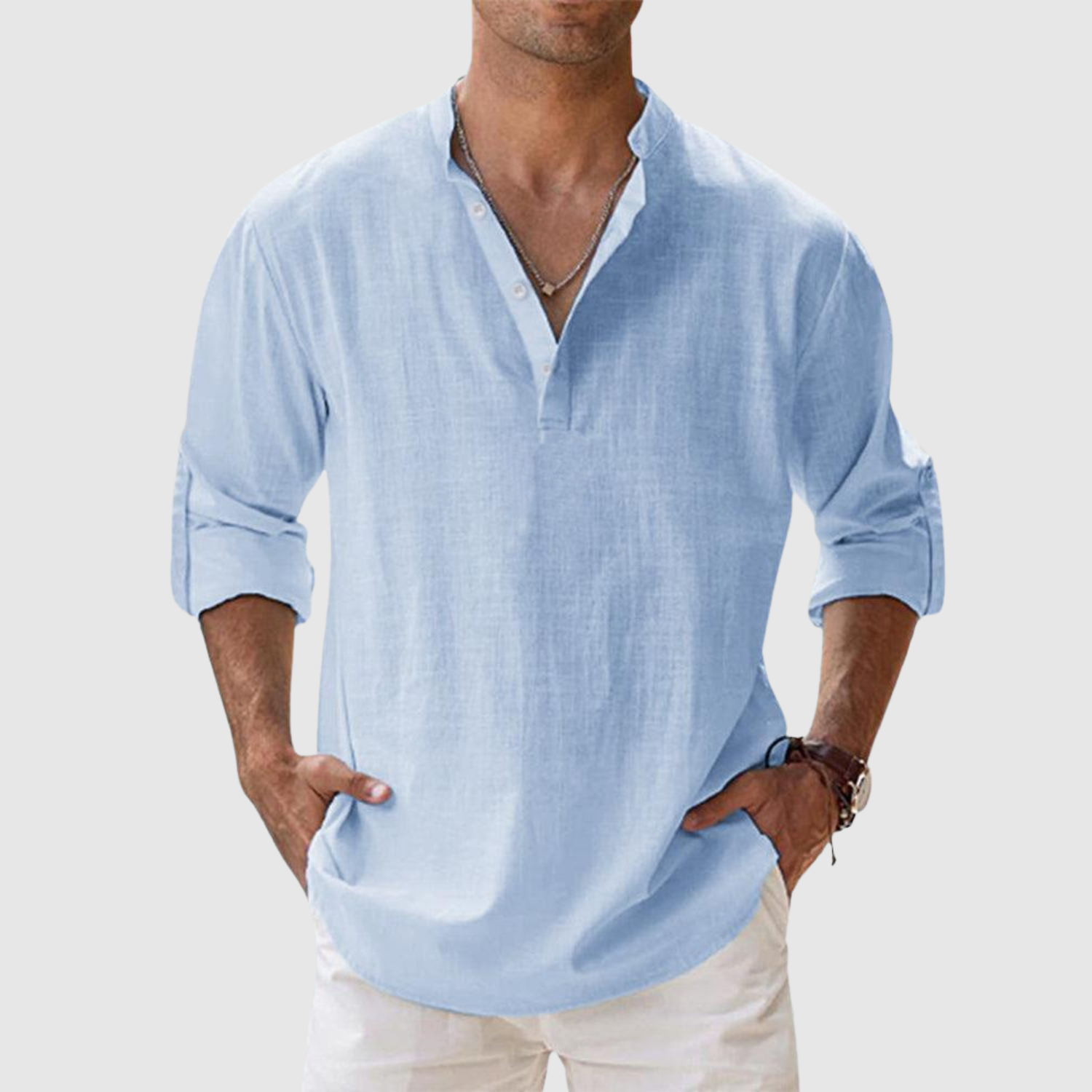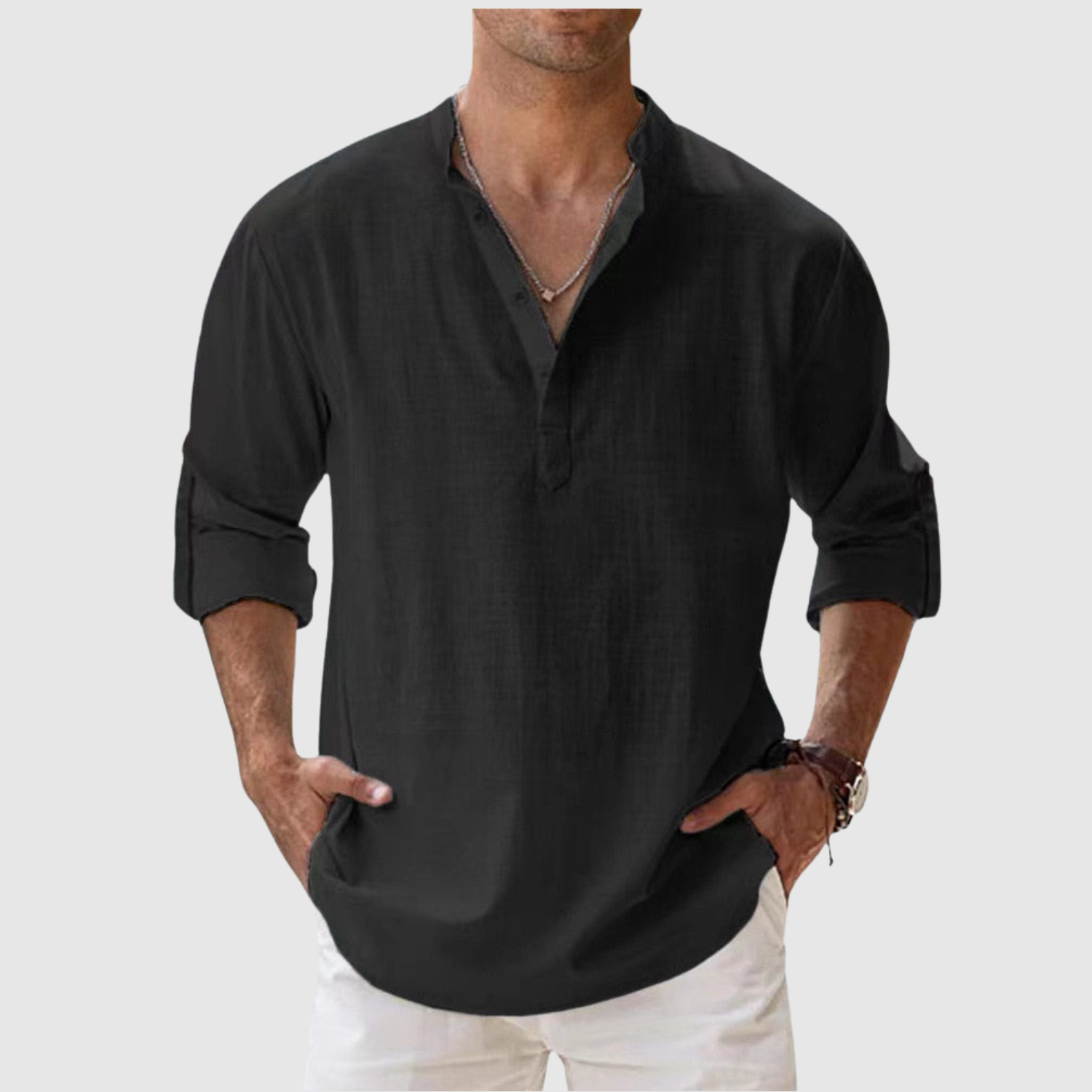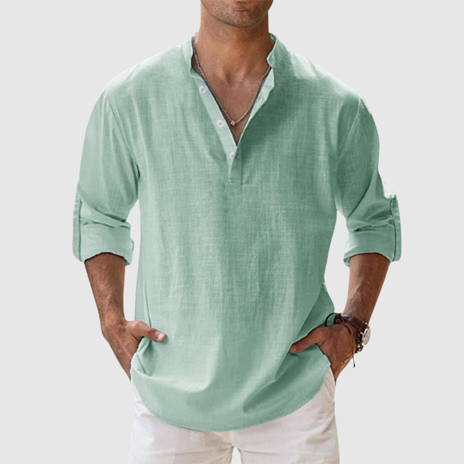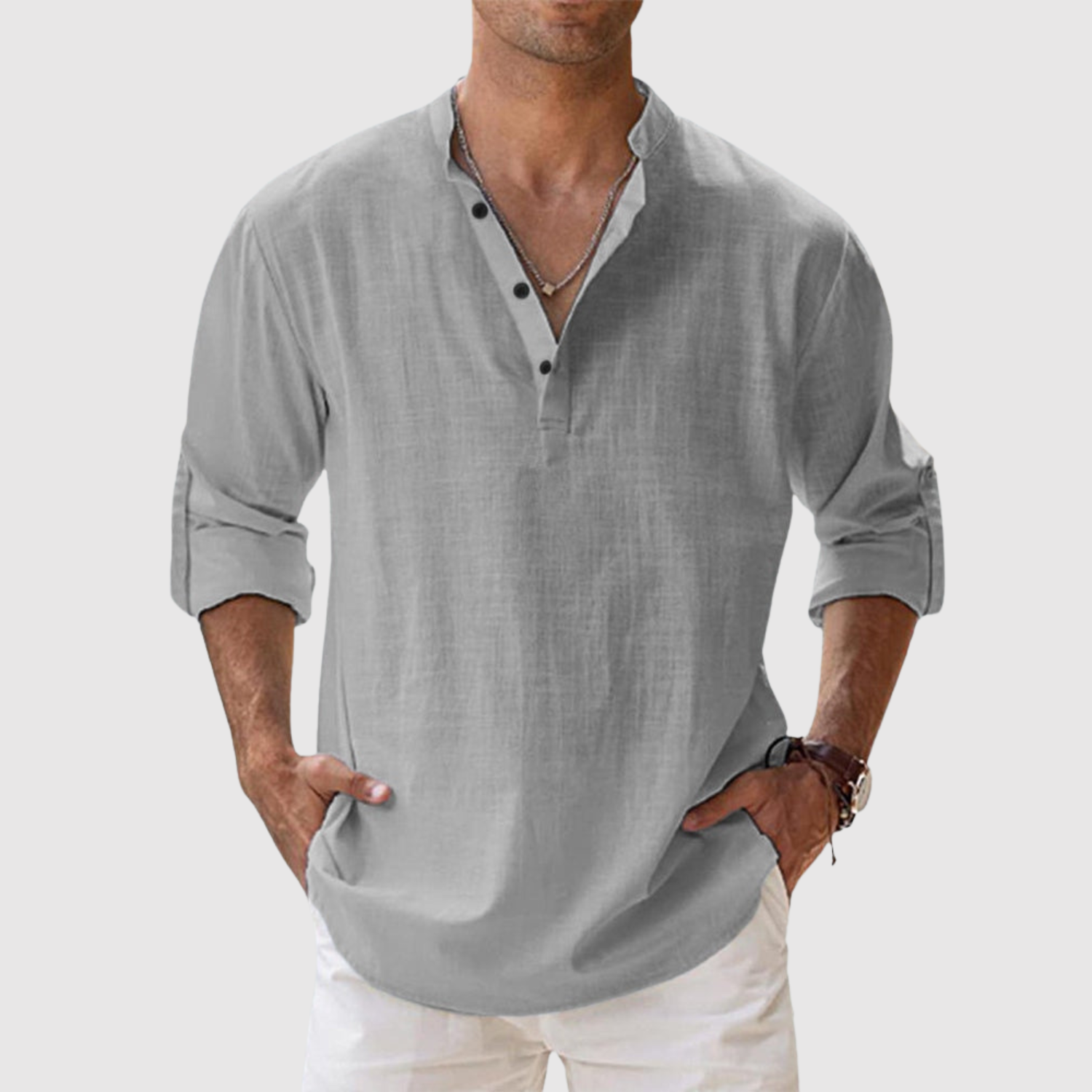 Το λινό πουκάμισό μας είναι σχεδιασμένο για άνδρες που αναζητούν μια φρέσκια και μοντέρνα εμφάνιση, χωρίς να θυσιάζουν την άνεση. Χάρη στη χαλαρή γραμμή και τον πολυλειτουργικό σχεδιασμό, είναι ιδανικό τόσο για βόλτες στην παραλία όσο και για χαλαρό αστικό στυλ. Το ελαφρύ και αναπνεύσιμο ύφασμα προσφέρει άνεση όλη μέρα, ενώ ο σχεδιασμός με ανοιχτό γιακά και μακριά μανίκια που μπορούν να σηκωθούν το καθιστούν πρακτικό και διαχρονικό στοιχείο.